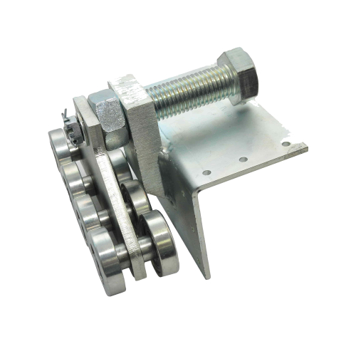 Очень легко и удобно регулировать положение ворот на роликовых каретках. Достаточно повернуть в нужную для Вас сторону эксцентриковый болт на роликовой каретке и зафиксировать болт гайкой. Максимальный диапазон регулирования обеими каретками для ворот с шириной проёма 4 м – 55 мм. Вся нагрузка от полотна ворот проходит через роликовые каретки и передается на опорные столбы, к которым прикреплены каретки.